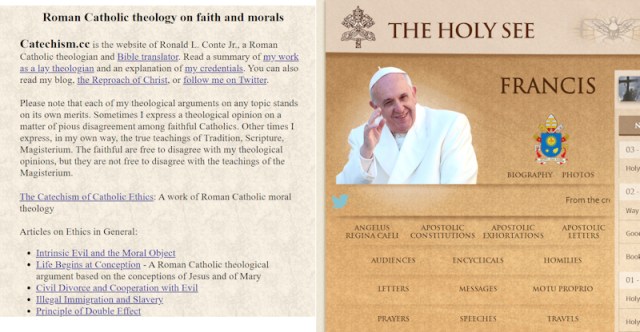 My comments: No, Megan, you did not see Catechism.cc years ago and think it was the actual Vatican site. It’s always been just a column of text with links to articles clearly attributed to me, as in “by Ronald L. Conte Jr.” There are prominent links to my books. My name is all over the site. So you are lying when you claim that you actually thought this was the actual Vatican site. Why don’t you quit your job and become one of those Instagram influencers who photoshops pictures of themselves pretending to be in other countries.